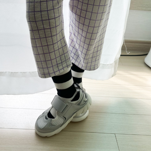 발등이 높은 아이도 밴딩 클로저를 통해 안정적인 착화가 가능합니다.