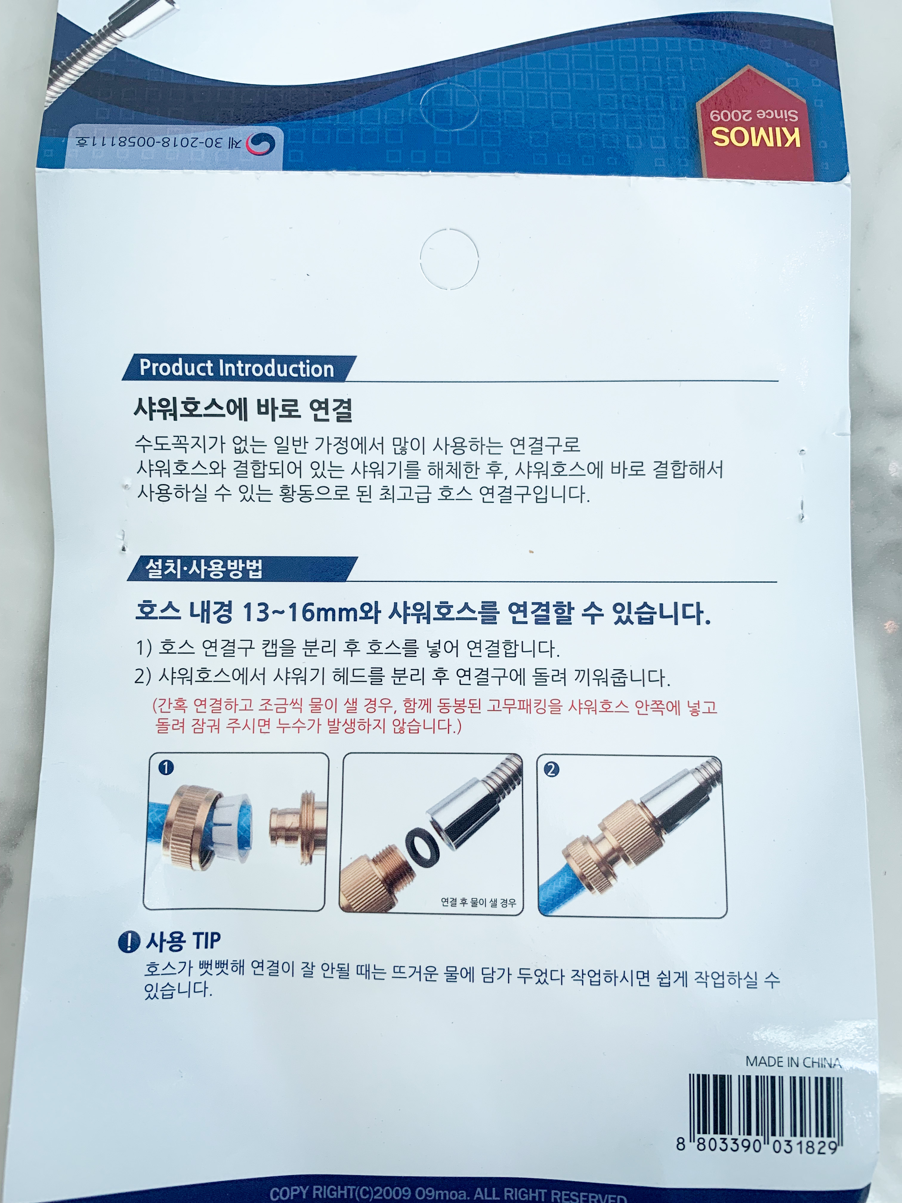 샤워호스 연결구로