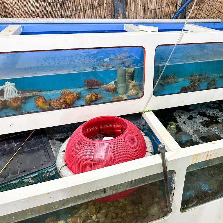 여러가지 횟감과 해산물들이 있으니