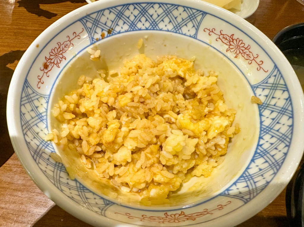 타마고와 소스로 밥을 비벼줍니다.