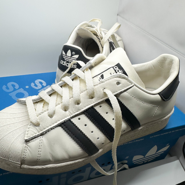 | 특징 | 오리지널 슈퍼스타를 기반으로 한 복각 모델, 빈티지 느낌의 쉐입과 마감, 클래식 셸토 디자인 |