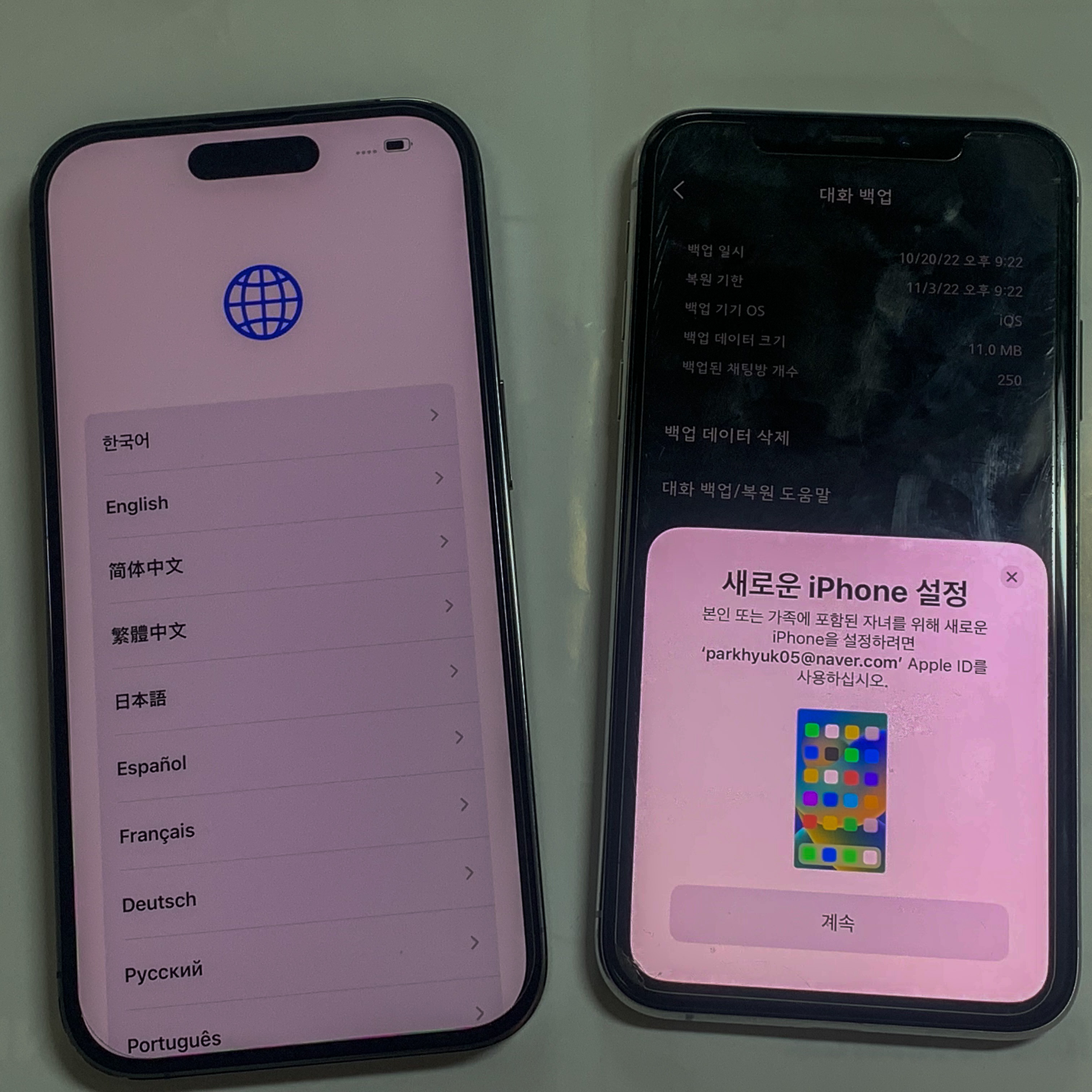 새로운 아이폰을 키게되면 언어선택을