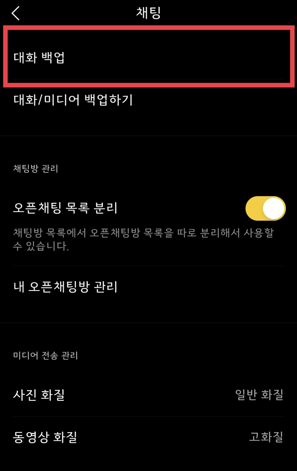 대화백업을 누르세요!