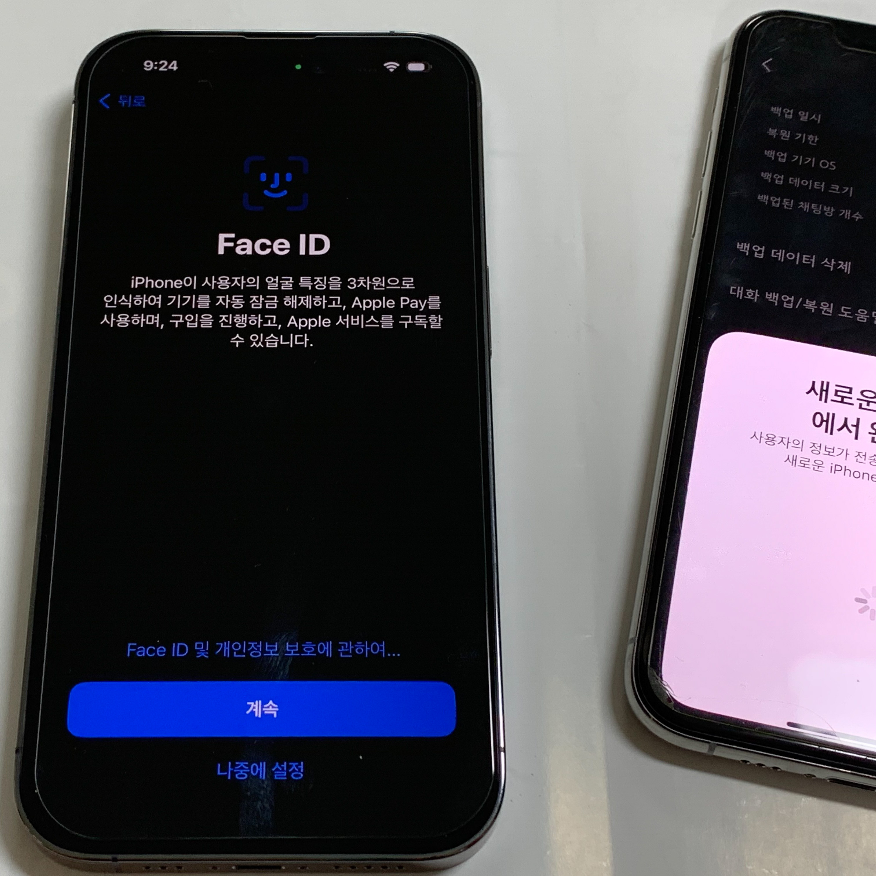 페이스아이디를 끝내고나면 데이터 전송을 할지