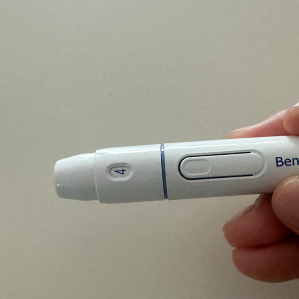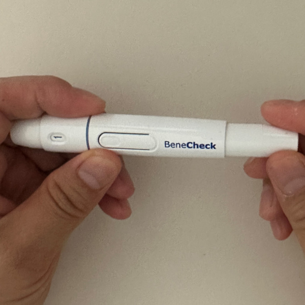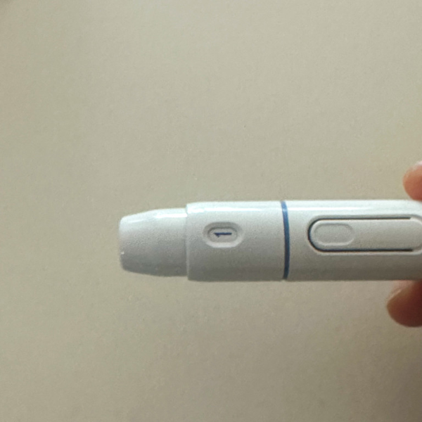 이제 장전된 채혈침을 손가락 끝부분에