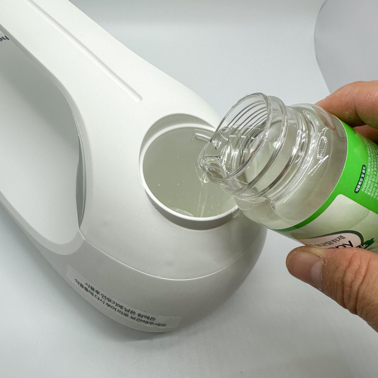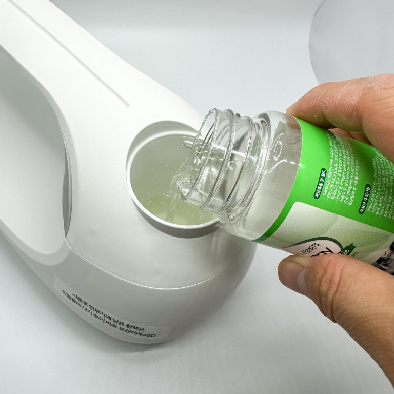 용액투입구에 뚜껑을 엽니다.