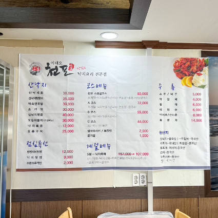 천포낙지 서산점의 메뉴판입니다.