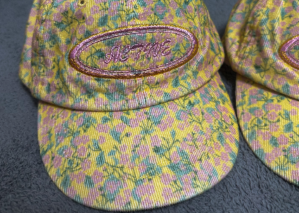 전면에 원형 자수로 레터링이 되어있다.