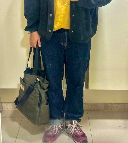 신발에 컬러감 포인트를 줬다.