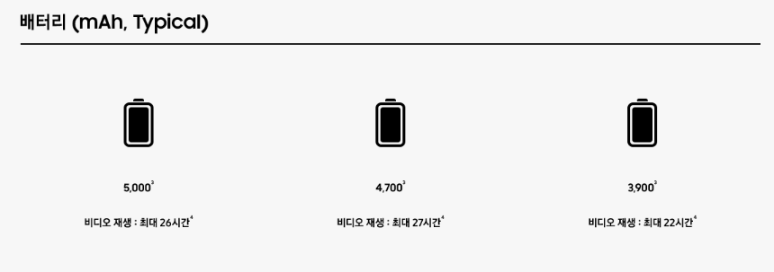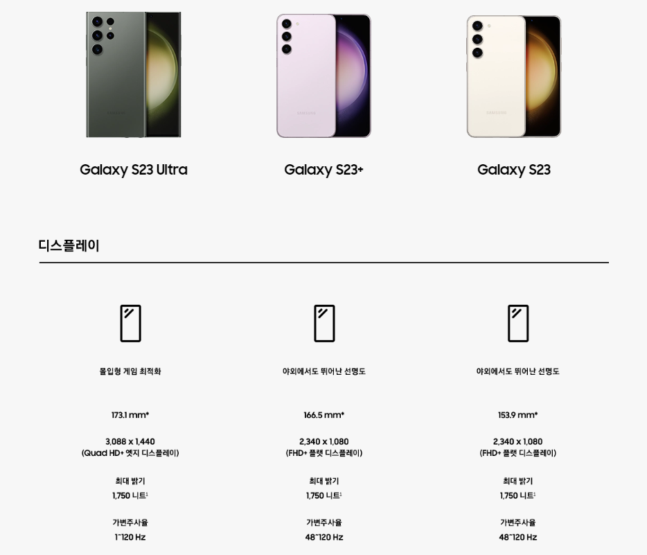 배터리는 S23 울트라 / S23+ / S23 순입니다.